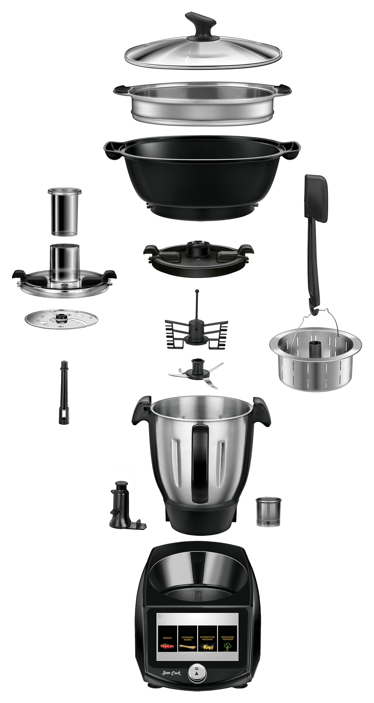Sam Cook Wi-Fi PSC-11 Thermo Robot — сучасний і функціональний кухонний робот із функцією Wi-Fi. Він замінить більшість приладів, наявних на вашій кухні, подбає про багато справ і дозволить вам досягти висот кулінарних можливостей.