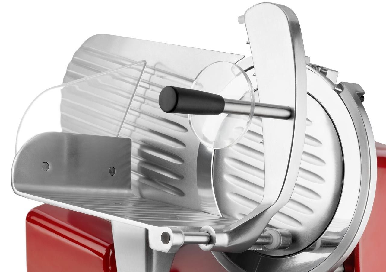 Неважливо, готуєте ви другий сніданок або вечірку на 30 осіб. Надзвичайно стабільний слайсер з професійними параметрами, підходить для використання в домашньому господарстві, а також для громадського харчування. У масивному металевому корпусі розміщено двигун потужністю 150 Вт, який забезпечує плавну потужність гострого леза з нержавіючої сталі. Легко нарізає м’які сири та тверду салямі.