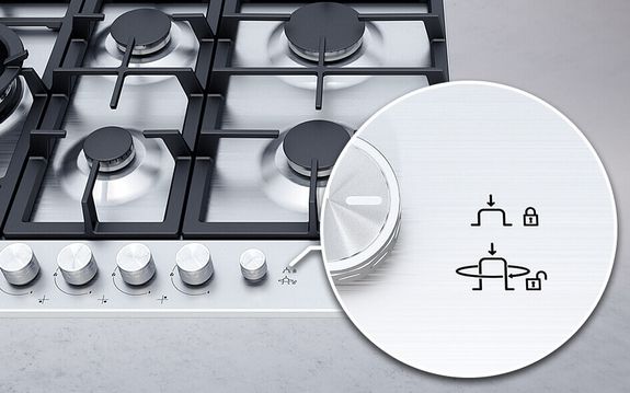 Головний перемикачЦя функція дозволяє вимкнути всі запалені конфорки одночасно. Це особливо корисно, наприклад, коли вирушаєте у відпустку, тоді з міркувань безпеки ви можете легко вимкнути подачу газу на плиту. Його також можна використовувати як блокування від дітей.