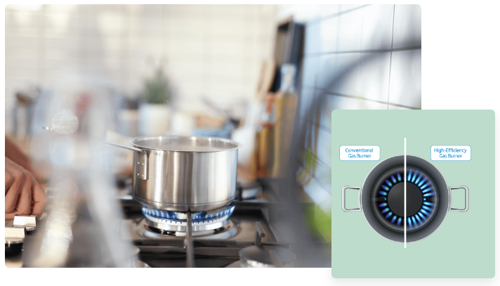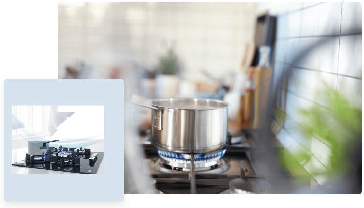Полум'я може легко згаснути, коли вас немає поруч, вивільняючи небезпечний газ у ваш дім. Захист від переливу газу визначає, коли полум'я пальника згасає вмістом каструлі, що википіла, або поривом вітру, а потім перекриває подачу газу. Жодних витоків і хвилювань.