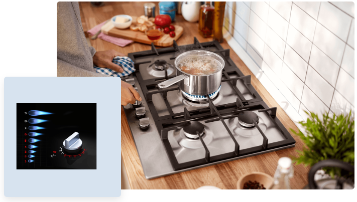 Щоразу отримуйте однакові результати з улюбленими рецептами. Завдяки більш точному контролю полум’я ви завжди можете покластися на свою варильну поверхню. Функція FlameAdjust забезпечує 9 рівнів точного контролю потужності для кожного пальника.