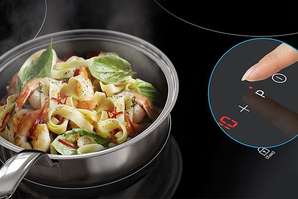 Завдяки подвійній зоні нагріву можна готувати навіть у великих каструлях, зона адаптується до розміру використовуваного посуду. Крім того, одна подвійна конфорка має потужність 2,2 кВт (210/120 мм), що дозволяє більш ефективно використовувати енергію.