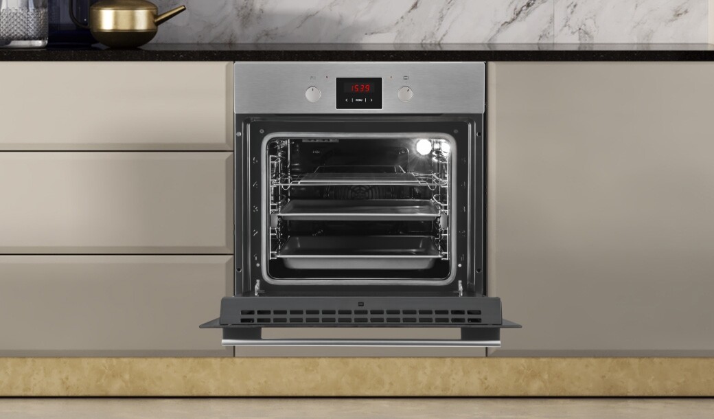 Зручно керуйте духовкою за допомогою датчиків і ручок, установіть час випікання, духовка сама вимкнеться та повідомить вам про це.