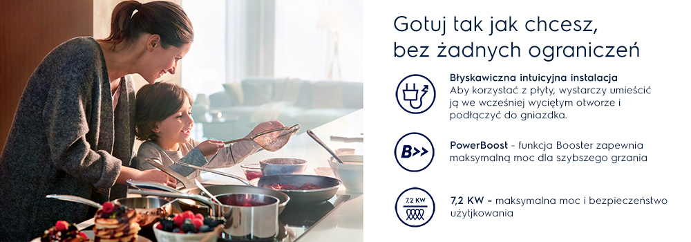 SLIM-FIT — це найдрібніша* індукційна плита на польському ринку. Вона з успіхом може замінити наявну у вас електричну або газову плиту, адже її глибина схожа на них. Ви можете легко розмістити його в стільниці товщиною 12 мм над ящиками та в стільниці 28 мм над духовкою Electrolux.
