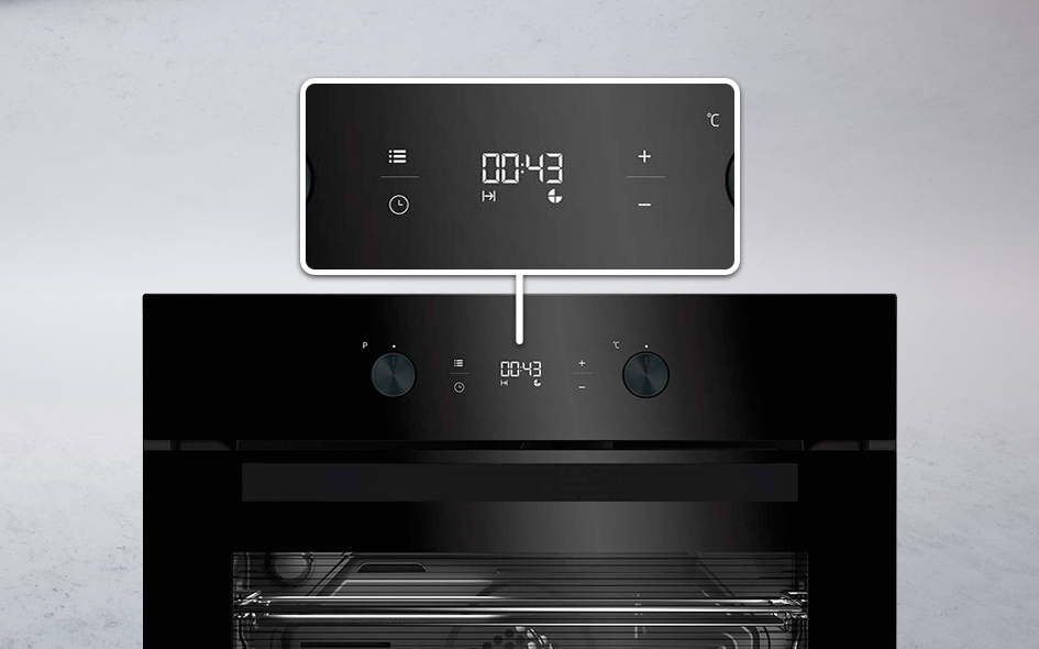 Інтуїтивно зрозумілий напівсенсорний дисплейІнтуїтивно зрозумілий дисплей і ергономічні ручки дозволяють легко керувати духовкою. Завдяки їм ми можемо швидко вибрати потрібну нам функцію. Крім того, дисплей ідеально вписується в сучасну естетику продукту.