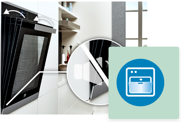 Завдяки новій конструкції петель дверцята в духовці Beko працюють плавно, м'яко і тихо - без хлопків і зайвого шуму.