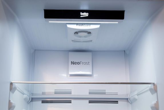 В: Система Beko NeoFrost — це більше, ніж звичайний No Frost — це дві (у холодильниках side-by-side — три) незалежні циркуляції повітря та вентилятори в одному пристрої. Тому технологія NeoFrost також включає морозильну частину.