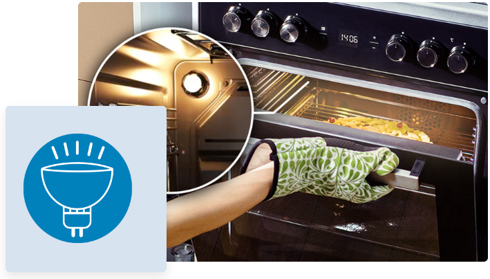 Хочете побачити, як готується, але не хочете відкривати двері та витрачати тепло всередині? Галогенне освітлення допомагає вам бачити всю камеру духовки, тому ви можете стежити за своїми кулінарними витворами, коли дверцята духовки щільно зачинені.
