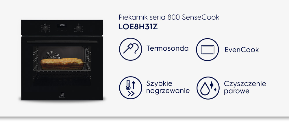 Духовка SenseCook® із термозондом контролює температуру всередині їжі. Коли страва буде готова, він подає сигнал про закінчення приготування та вимикає духовку.