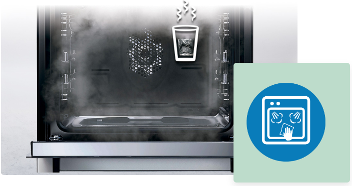 Ви можете легко очистити цю піч завдяки тихій потужності пари. Просто налийте трохи води в камеру духовки та ввімкніть відповідну програму, щоб пара осідала на стінки, полегшуючи їх очищення.