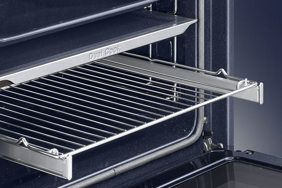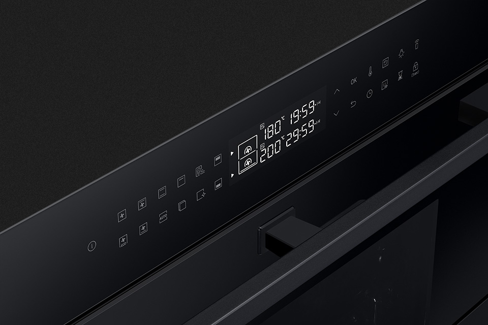 Крім можливості створення двох зон випікання, духовка Samsung оснащена розділеними дверцятами, що забезпечує вільний доступ і дозволяє контролювати страву у верхній камері, не турбуючись про те, що процес випічки в нижній камері буде перешкоджати.
