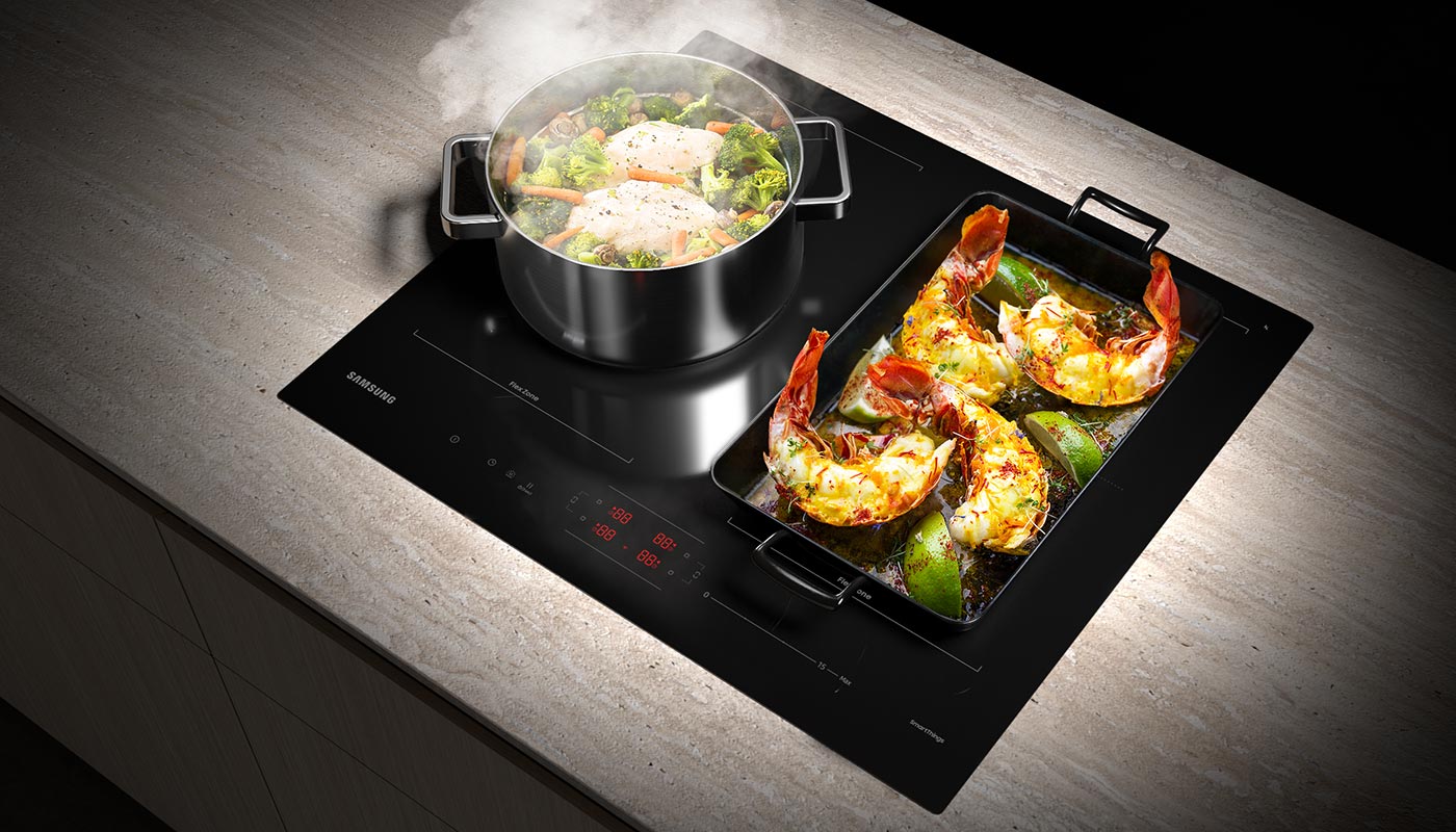 Дві широкі зони Flex дозволяють готувати багато страв одночасно. Ви отримуєте набагато більше гнучкості в їх приготуванні. Обидва просторі і можуть вмістити посуд різного розміру та форми, включаючи великі сковорідки та довгі жаровні. Це значно полегшує приготування їжі для вашої родини.