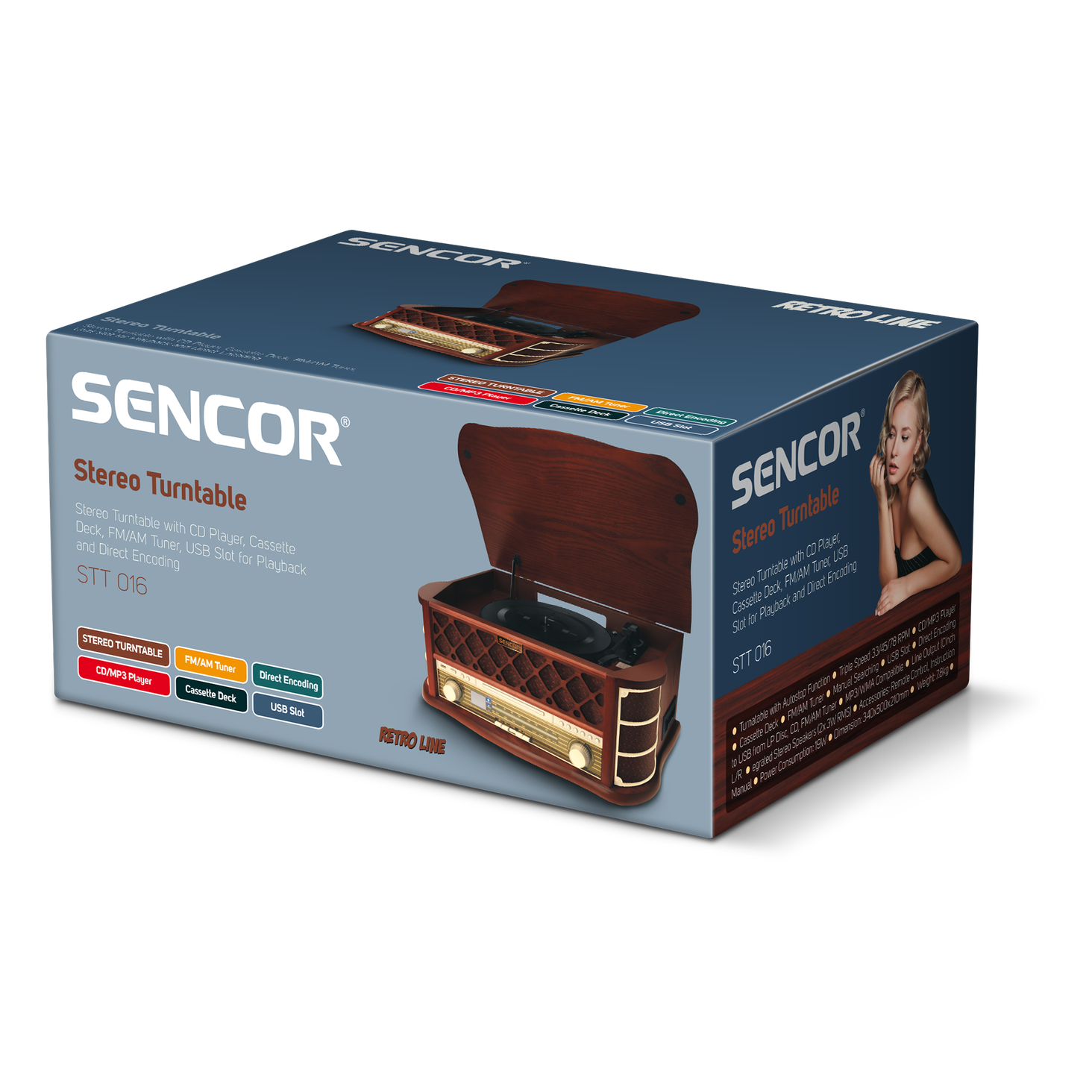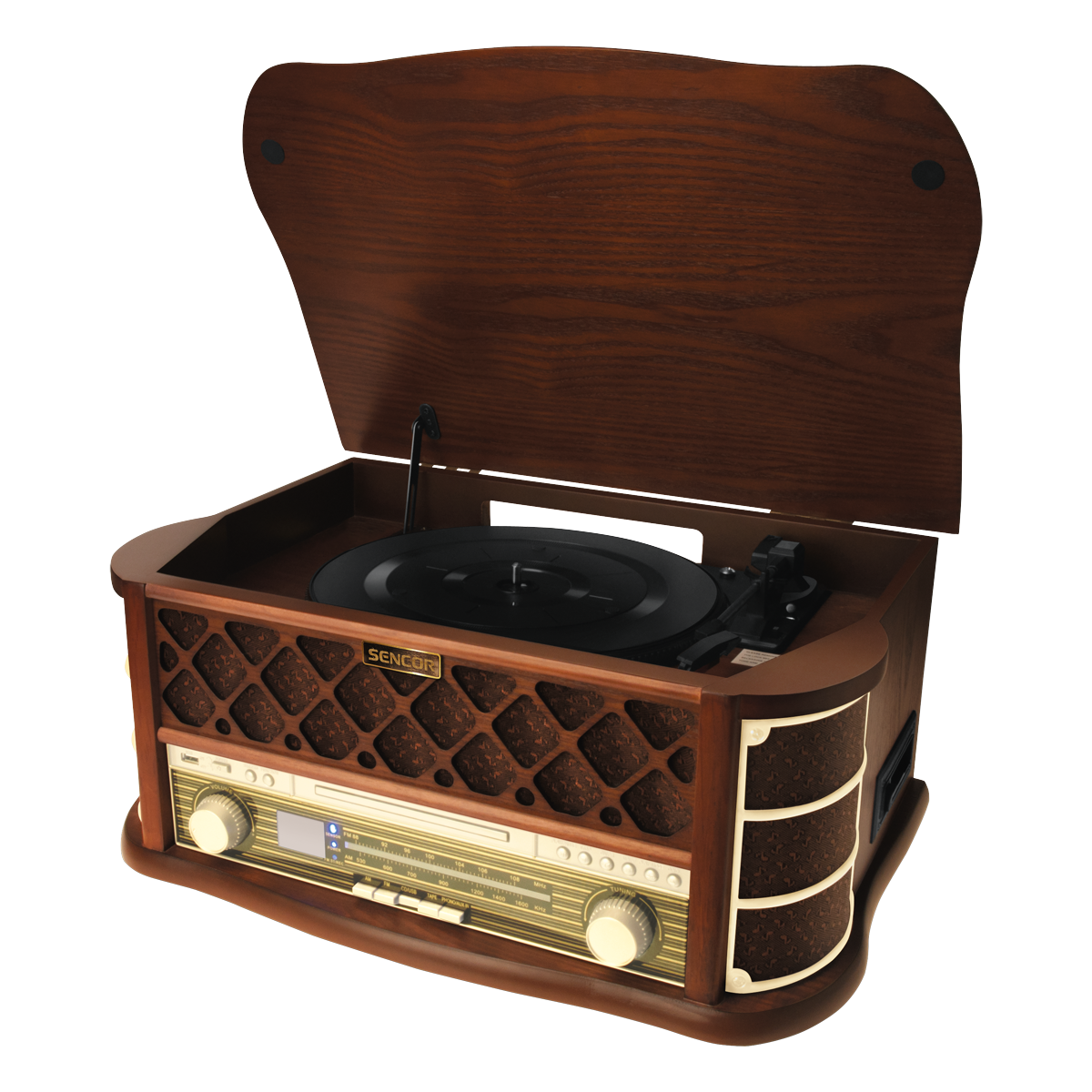 Стереопрогравач із програвачем компакт-дисків, касетним магнітофоном, AM/FM-тюнером, USB-роз’ємом для відтворення та прямого кодування. Програвач із функцією автоматичної зупинки. Потрійна швидкість 33/45/78 RPMCD/MP3-магнітофон. , FM / AMMP3 / WMA тюнер Гніздо для навушників, RCA Aux In Вбудовані стереодинаміки (2 x 3 Вт RMS) Споживана потужність: 19 Вт Розміри: 340x500x210 мм Вага: 7,8 кг