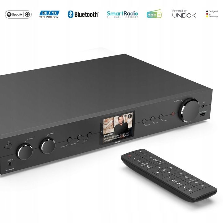 Керувати пристроєм можна віддалено за допомогою смартфона та мобільного додатку UNDOK. Також у вашому розпорядженні пульт дистанційного керування та класична радіопанель. У будь-якій ситуації ви можете легко змінити станцію та відрегулювати гучність.