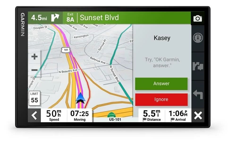 Після сполучення пристрою з телефоном, на якому встановлено програму Garmin Drive, ви отримаєте доступ до ще більшої кількості функцій. Додаток інформує про поточні погодні умови, ціни на паливо в цьому районі, а також складнощі на маршруті. Підключивши DriveSmart до смартфону, ви також зможете телефонувати за допомогою вбудованого гучного зв’язку.