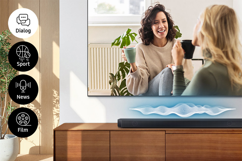 Саундбар автоматично розпізнає оточення та регулює діапазон і тон звуку.