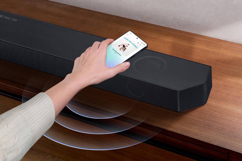 Завдяки функції «Натисни й відтвори» ви можете швидко й легко переключитися з телефону на звукову панель, щоб слухати те, що вам найбільше подобається. Щоб передати музику, достатньо лише одного руху – торкніться звукової панелі телефоном, і вона автоматично виявить пристрій і відтворить музику з вашого смартфона.