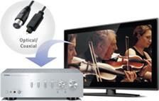 Yamaha A-S301 оснащений двома цифровими входами: оптичним і коаксіальним. Використовуючи їх, ви можете легко відтворювати звук з підключеного телевізора (оптичні входи) і Blu-ray плеєра (коаксіальні входи). Звуковий сигнал залишається в цифровому вигляді, і тільки підсилювач перетворює сигнал в аналоговий за допомогою високоякісного цифро-аналогового перетворювача, тому ви можете насолоджуватися динамічним звуком будь-якого джерела розваг - від спортивних та інших телепрограм до фільмів і концертів. .