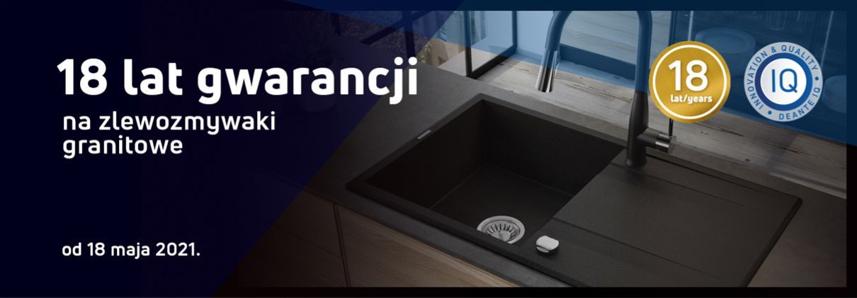 Високоякісний граніт Deante надзвичайно твердий, стійкий до пошкоджень і високих температур. Це підтверджує 18-річна гарантія виробника.