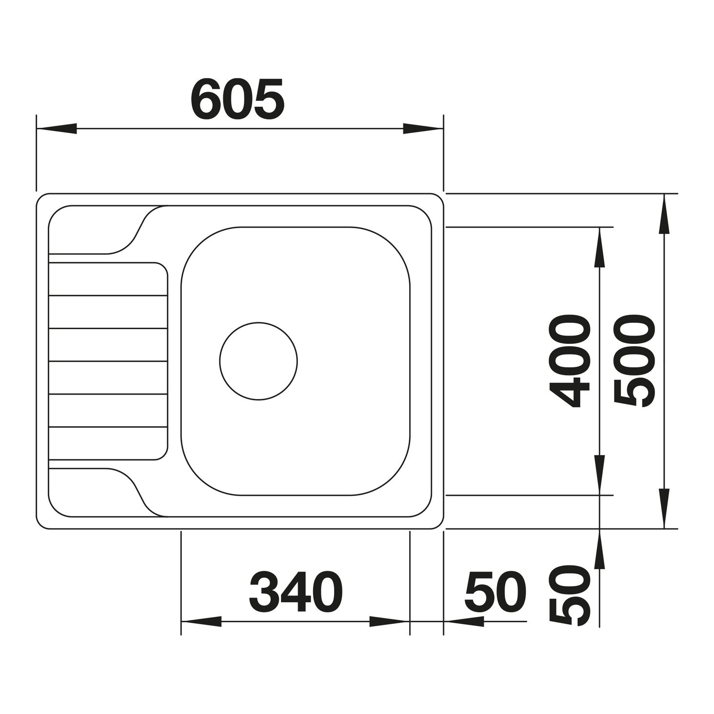 Позачасовий дизайн Простора чаша гарантує оптимальне використання простору раковини Функціональний зливний кран Двостороння раковина 3 ½" пробка з сітчастим фільтром