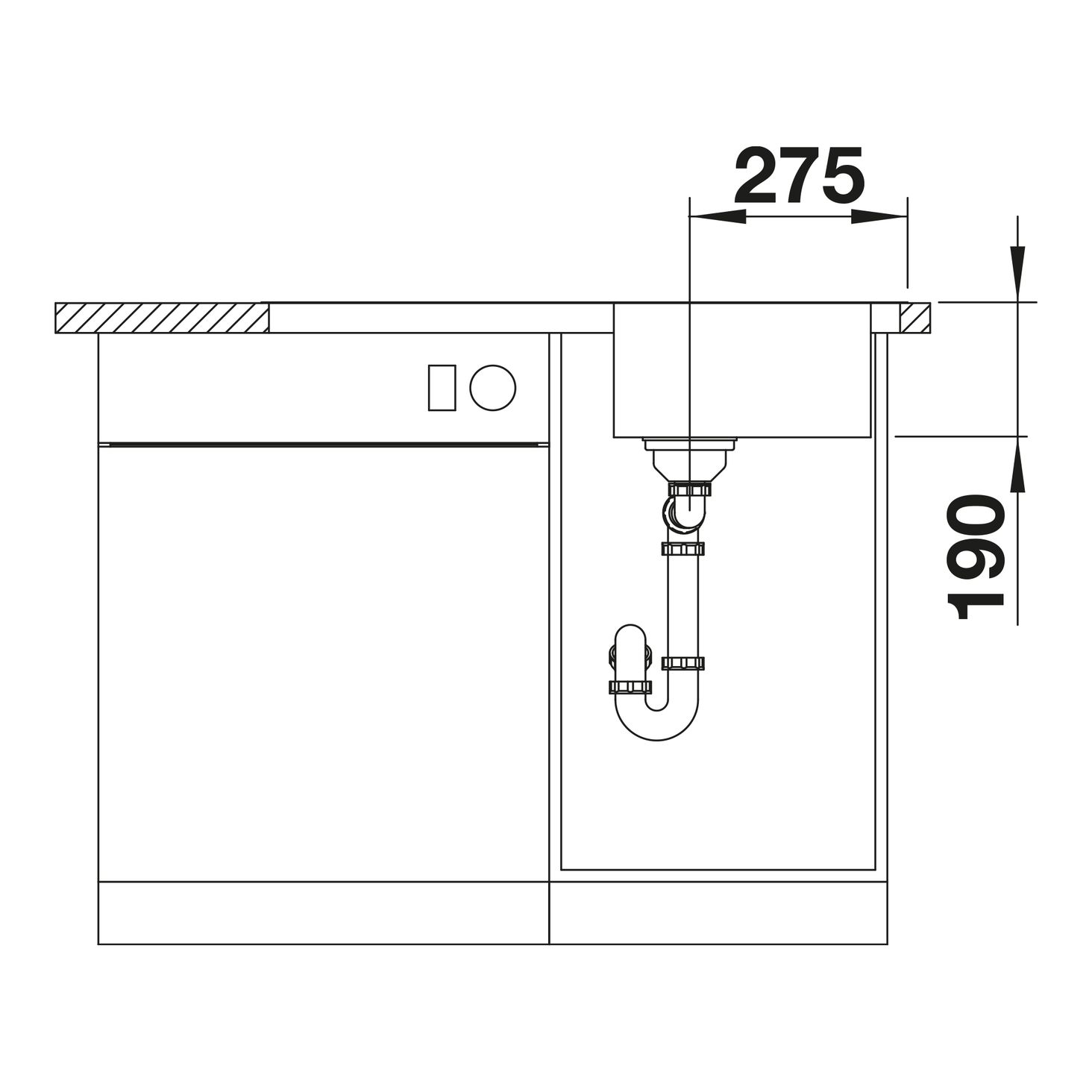Дизайн DINAS 45 STimeless. Простора чаша гарантує оптимальне використання простору раковини. Функціональний зливний кран. Перекидна раковина. Заглушка 3 ½” із сітчастим фільтром.