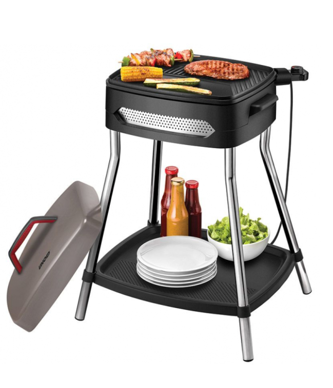 Barbecue Power Grill стоячий електрогриль 58580 - UNOLDТаблиця гриль з антипригарним покриттям – поверхня легко чиститься гриль: 40 см Рід стенд контролю температури поверх Легко розбирання Обладнаний з полицею, кришкою, піддоном для крапель Живлення: 2000 Вт, 230-240 В / 50-60 Гц Розміри: 58,5 x 47,6 x 89,5 см Вага: 11,8 кг