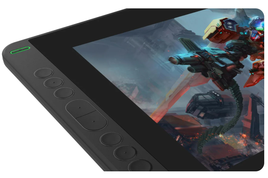 Вісім клавіш, які користувач може вільно програмувати (наприклад, змінювати розмір пензля, прокручувати зображення або їх збільшувати), розташовані на лівій стороні пристрою. Використовуйте їх, щоб покращити робочий процес.