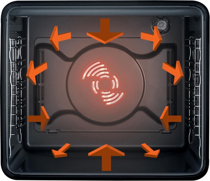 Система вентиляції забезпечує оптимальні результати завдяки рівномірному розподілу нагрітого повітря в камері духовки.