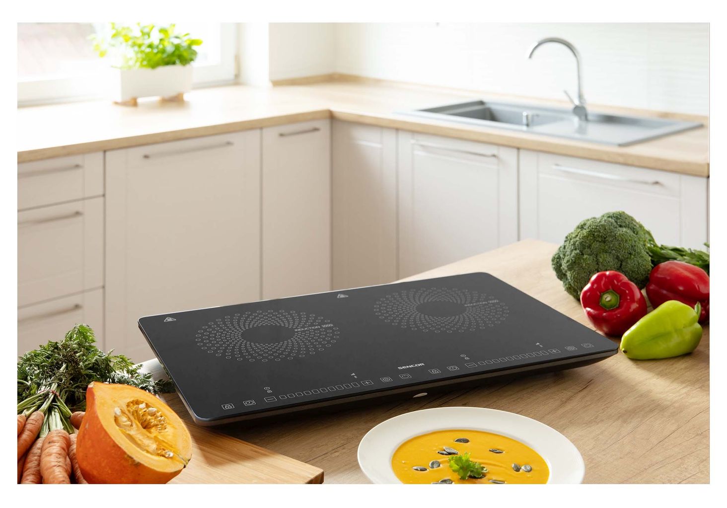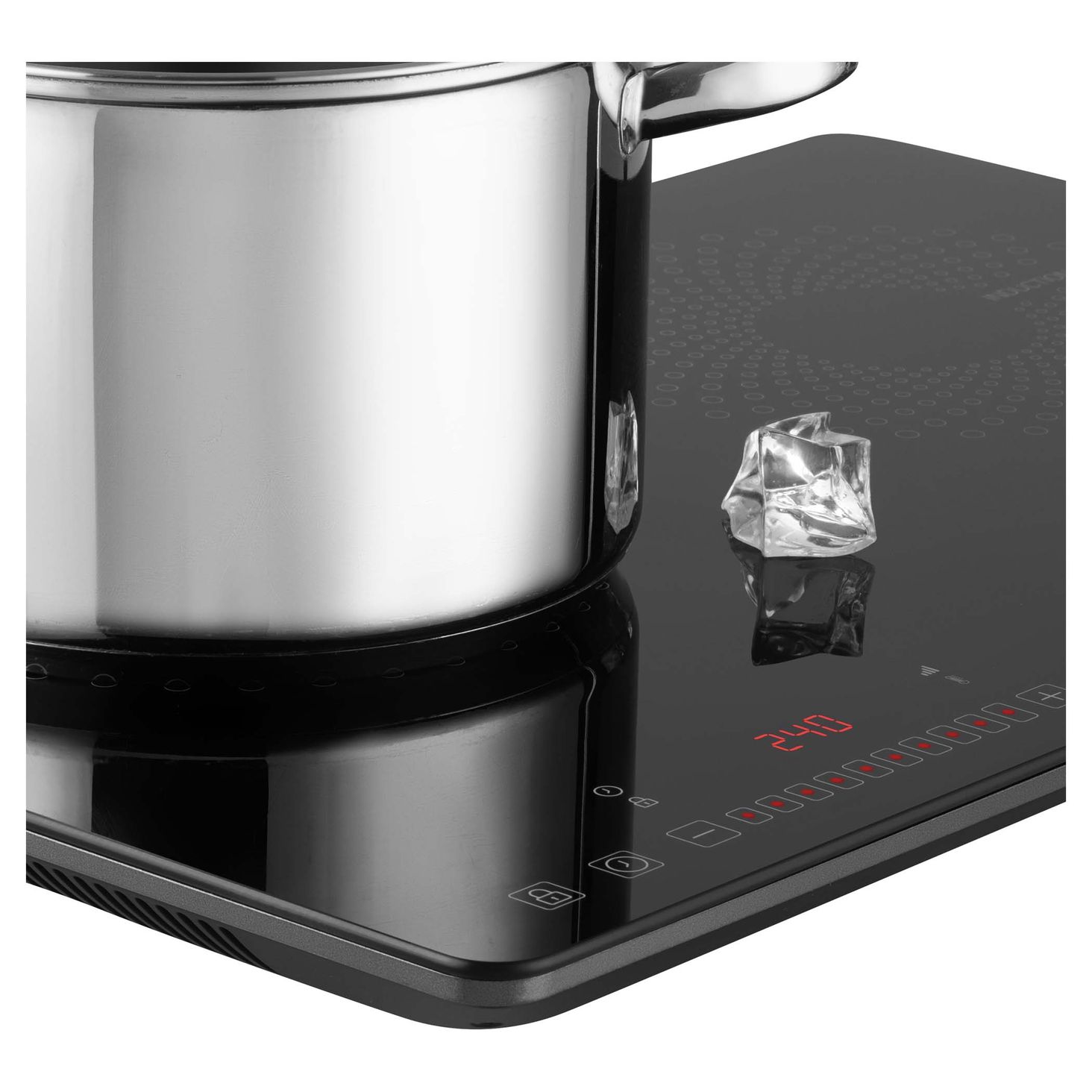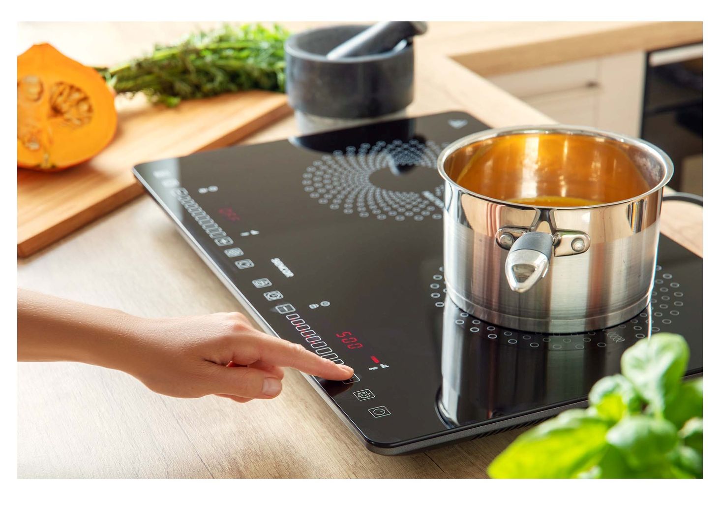 Стеклокерамічна індукційна варильна поверхня прохолодна на дотик, оскільки тепло генерується безпосередньо в посуді за допомогою індукції (примітка: варильна поверхня може частково нагріватися від варильної ємності). Економія часу (60%) та електроенергії. (50%) під час індукційного приготування. Має дуже високий ККД (до 90%) і мінімальні тепловтрати.
