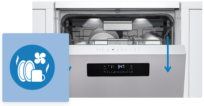 Після завершення циклу миття дверцята посудомийної машини відкриються автоматично, завдяки чому зібраний всередині посуд висохне набагато швидше - без вашого втручання. Завдяки цьому рішенню посудомийна машина також споживає менше електроенергії, досягаючи високого класу енергоспоживання