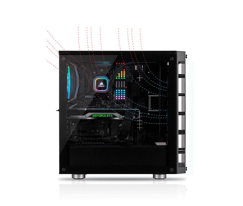 Компонування внутрішньої частини комп’ютера не перешкоджає циркуляції повітря та спрямовує холодне повітря до найгарячіших компонентів комп’ютера.