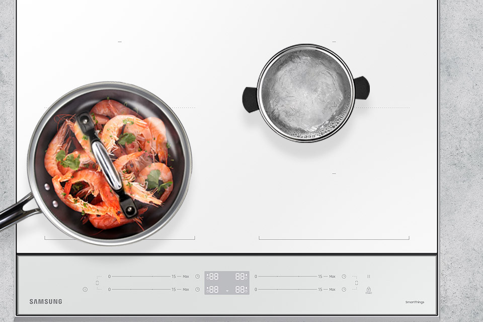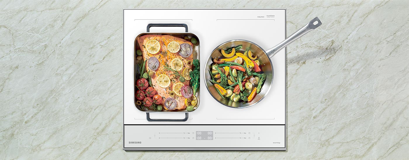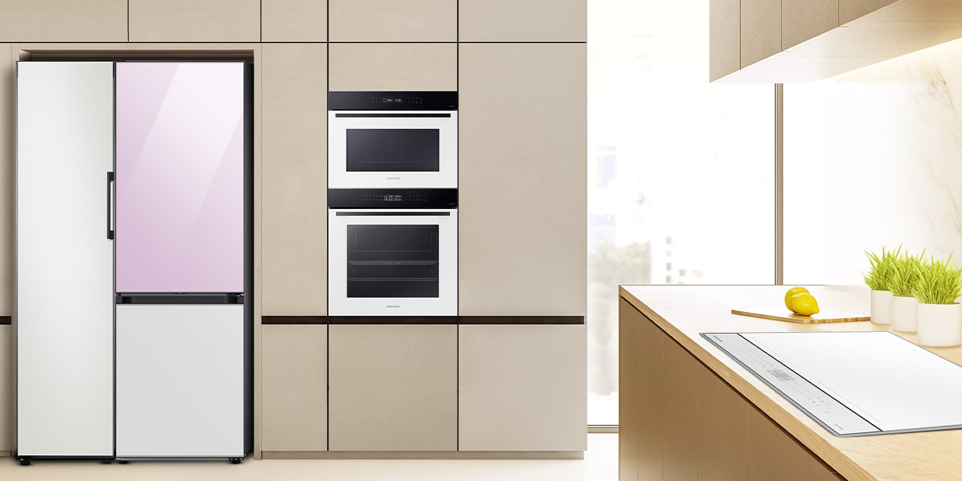 Вибирайте техніку серії Bespoke для своєї кухні, щоб створити ідеально гармонійний інтер'єр. Виберіть індукційну варильну поверхню NZ64B5067YH і відповідну духовку Samsung із білим склом.