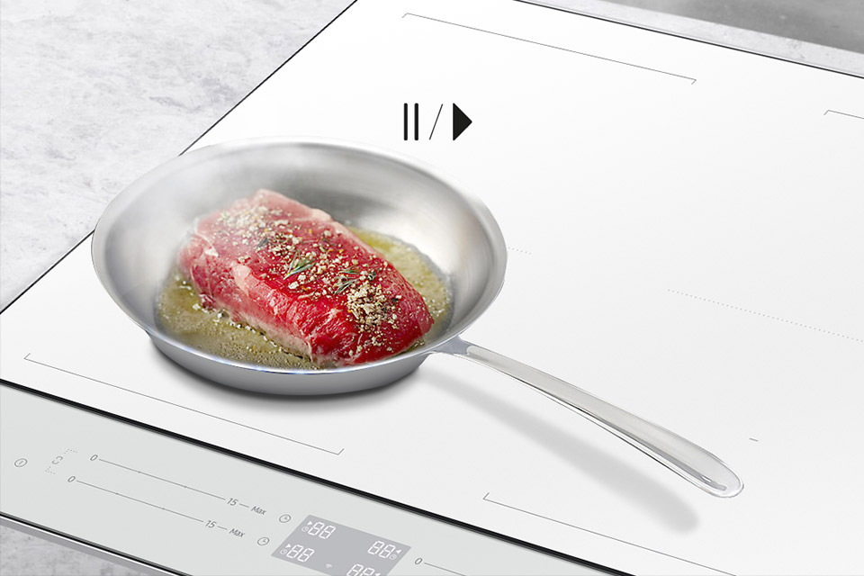 Функція паузи забезпечує безпеку та зручність використання індукційної плити. Його мета – тимчасово звести роботу всіх полів до мінімального рівня. Це дозволить вам, наприклад, відповісти на дзвінок або перевірити рецепт, не турбуючись про те, що їжа підгорить. Відновити працездатність пристрою так само легко і швидко - просто натисніть кнопку ще раз. Ви також можете запрограмувати час роботи кожного поля за допомогою таймера.