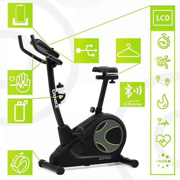 Електромагнітний велосипед Zipro Flame оснащено комп’ютером, яким можна керувати бездротово зі свого смартфона завдяки з’єднанню Bluetooth. Додаток iConsole+ Training відкриває абсолютно нові можливості для навчання вашого комп’ютера та дозволяє використовувати численні додаткові навчальні програми та, наприклад, віртуальні маршрути на основі карт Google.Через iConsole ви можете тренуватися в додатку Kinomap – виберіть відео з маршрут і поїзд! Слідкуйте за своїм прогресом і змагайтеся з іншими гравцями онлайн в реальному часі.