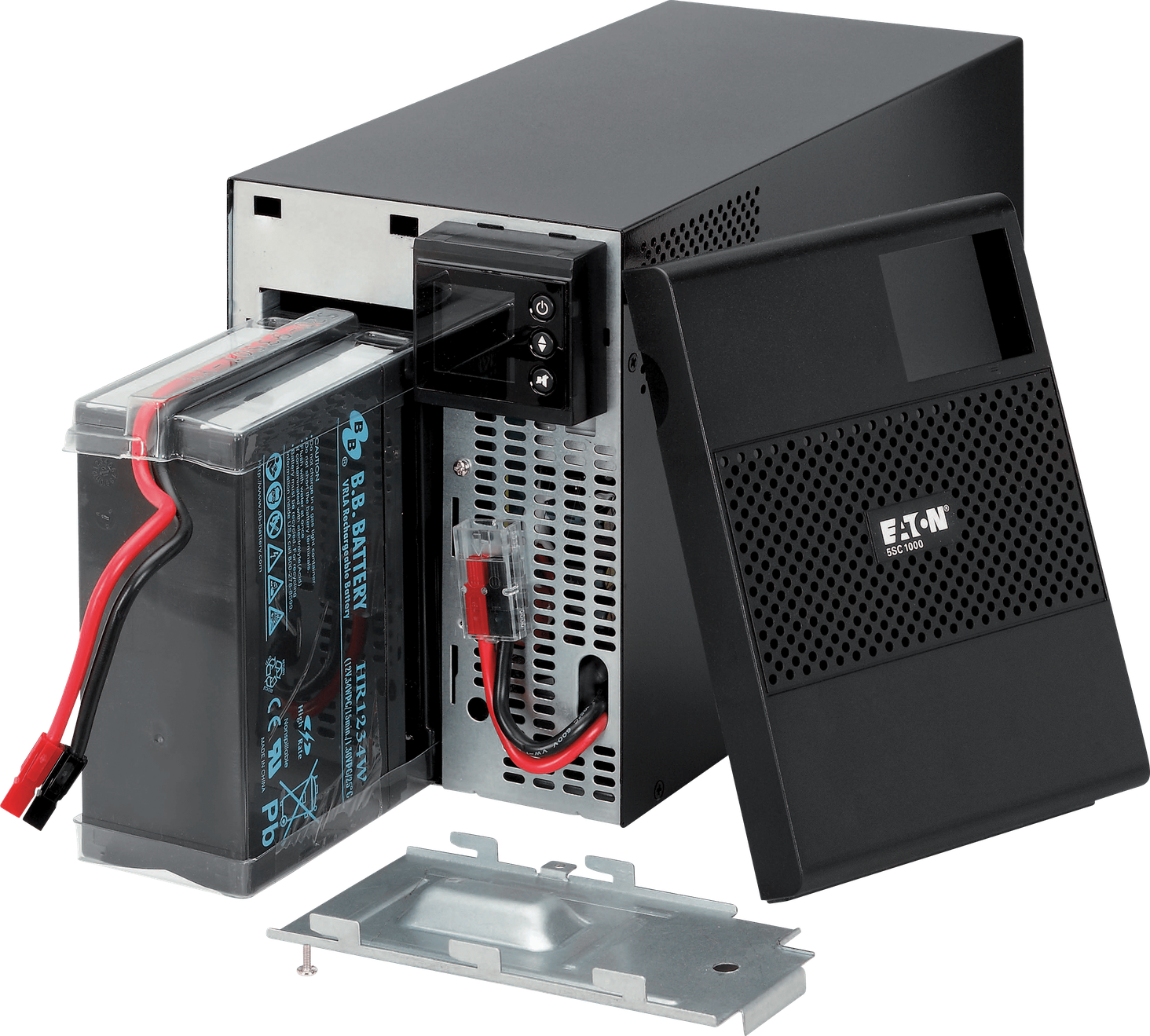 Пристрій має змінний акумулятор. Тут використовуються типові батареї 12 В (2 x 12 В 9 Ач). Технологія керування зарядом батареї ABM® від Eaton використовує технологію 3-етапного заряджання, яка заряджає батареї лише за потреби, тому батареї менше піддаються корозії, а термін служби батареї подовжується до 50%. Вбудовані функції автоматичного тестування акумулятора та захисту від глибокого розряду також сприяють подовженню терміну служби вбудованого акумулятора. Функція холодного запуску дозволяє запускати пристрій, підключений до ДБЖ, навіть якщо в мережі немає живлення. Поки батарея не розрядиться, користувач може, наприклад, завантажити необхідні дані з комп'ютера. Це одна з найкорисніших і найчастіше використовуваних функцій. Типовий час резервного копіювання для одного ПК із 22-дюймовим РК-монітором становить 17 хвилин (енергоспоживання приблизно 200 Вт)*.