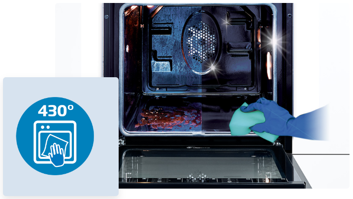 120-хвилинна програма піролізу спалює стійкі плями до попелу за температури 430°C. Залишки, що залишилися після виконання програми, можна легко видалити ганчіркою без використання миючих засобів.