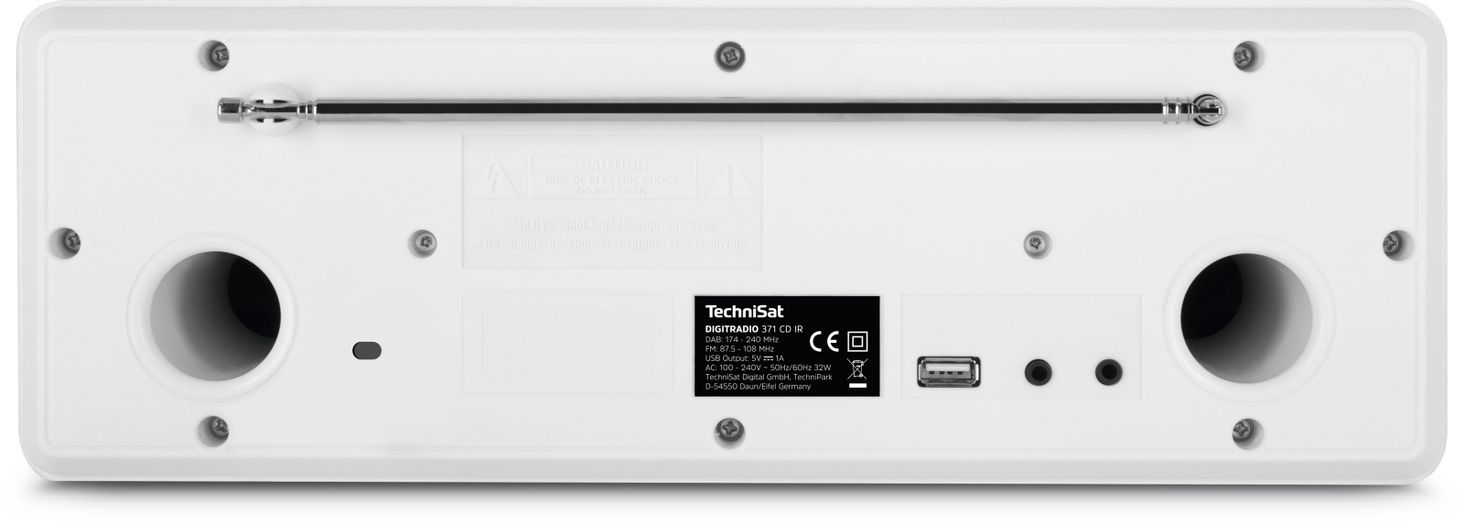 З’єднання Bluetooth, яке використовується в моделі DIGITRADIO 371 CD IR, дозволяє бездротовим способом слухати музику, збережену на мобільних пристроях. Модель DIGITRADIO 371 CD IR вражає не тільки різноманітністю музичних джерел, але й прекрасним звучанням. Два потужні динаміки забезпечують фантастичне стереозвучання. Кольоровий дисплей 2,4 дюйма використовується для відображення додаткової інформації, назв станцій і треків, а інтуїтивно зрозуміла концепція керування робить навігацію багатофункціональним меню DIGITRADIO 371 CD IR дуже легкою. Крім того, музичною системою можна керувати за допомогою пульта дистанційного керування, що входить у комплект. або за допомогою програми TechniSat CONNECT, встановленої на вашому смартфоні/планшеті.