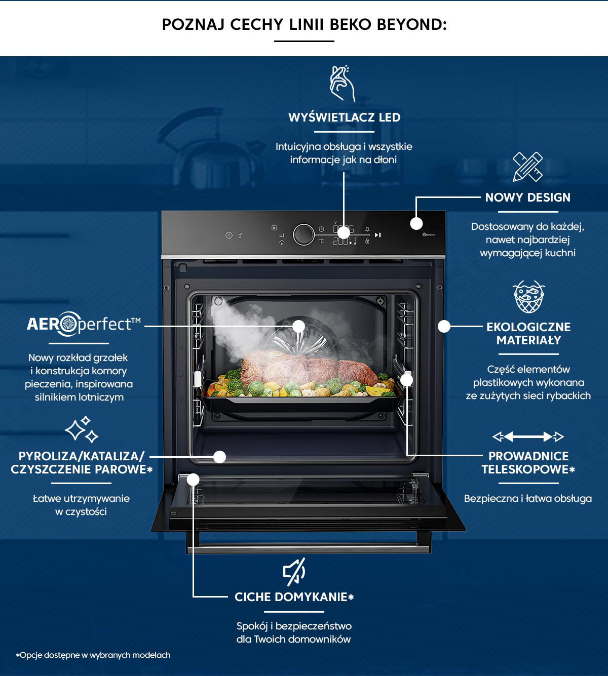 Телескопічні напрямні забезпечують винятковий комфорт і безпеку. Завдяки їм ви можете швидко та легко вставляти та виймати все необхідне з духовки Beko.