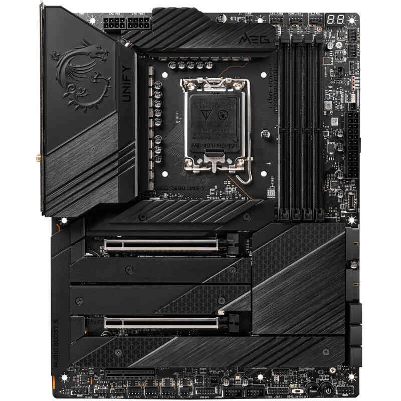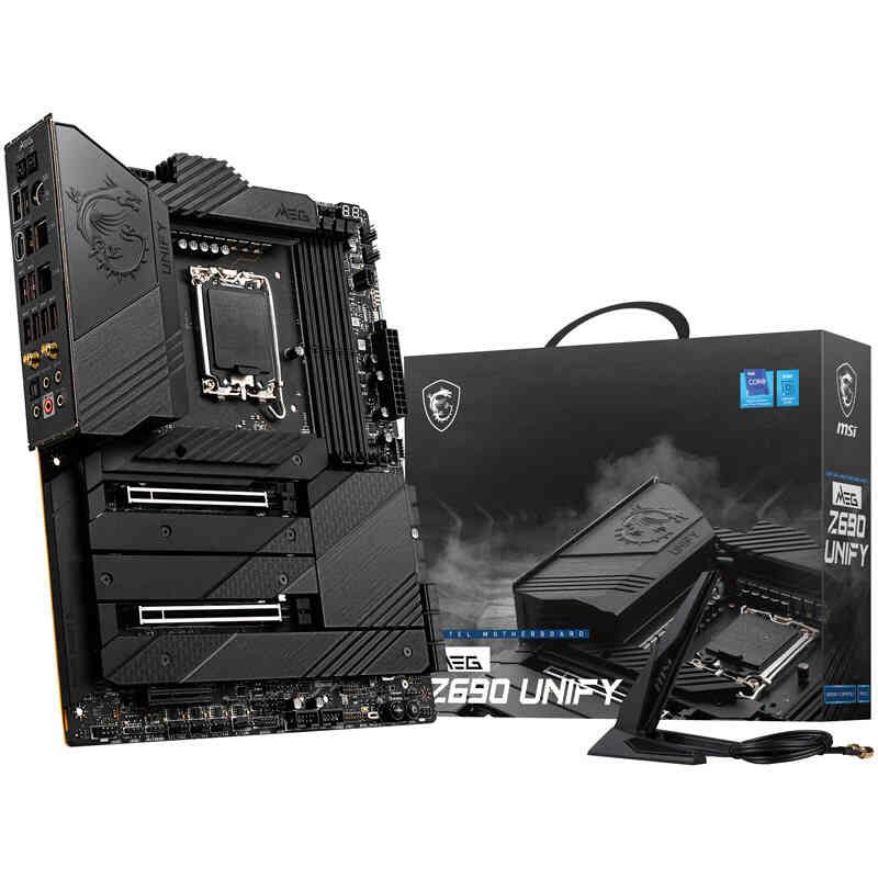 MSI MEG Z690 Unifiy — це материнська плата формату ATX із високоякісним чіпсетом Intel Z690 і роз’ємом LGA 1700. Материнська плата розроблена для роботи з настільними процесорами Alder Lake Intel Core 12-го покоління. Він підтримує пам’ять DDR5 до 6,666+ МГц і ідеально підходить для розгону завдяки джерелу живлення 16+1+2.