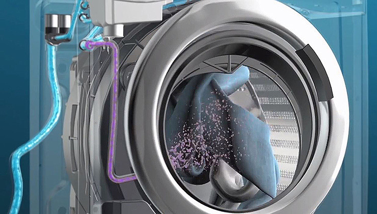 Технологія Mix Power System+ дозволяє видаляти важкі забруднення за низької температури. Завдяки цьому прання при 20°C дасть такі ж результати, як і прання при 40°C. Система розчиняє миючий засіб перед тим, як потрапити в барабан, випускаючи його безпосередньо на одяг, таким чином видаляючи навіть сильні забруднення більш ефективно.