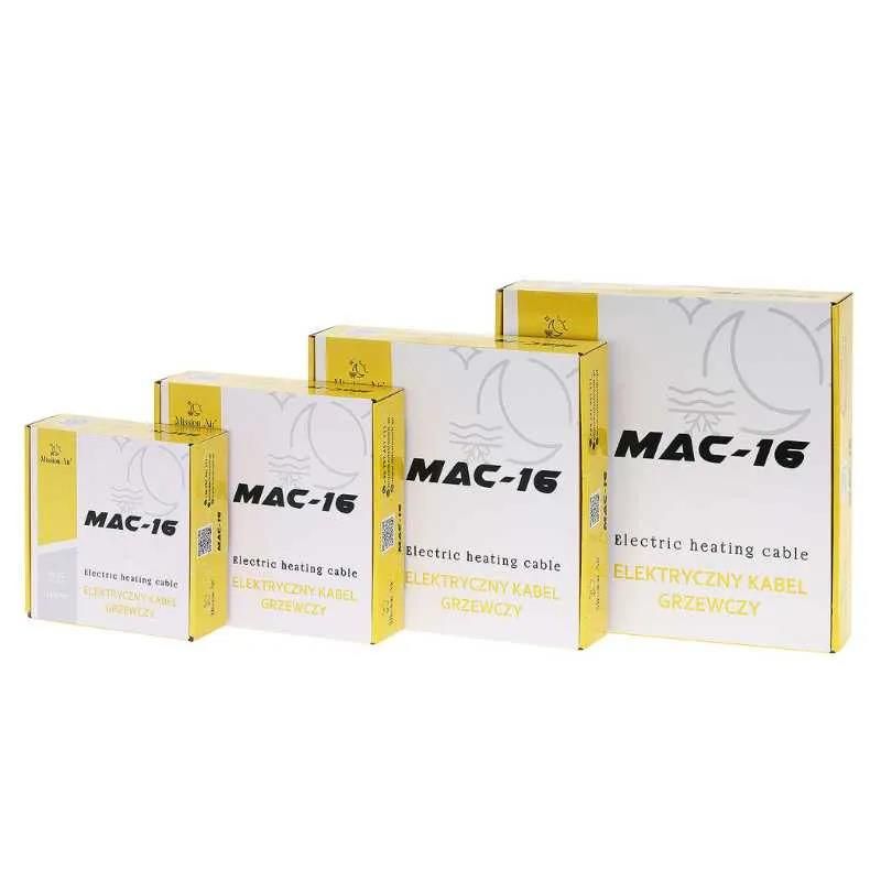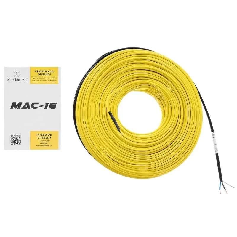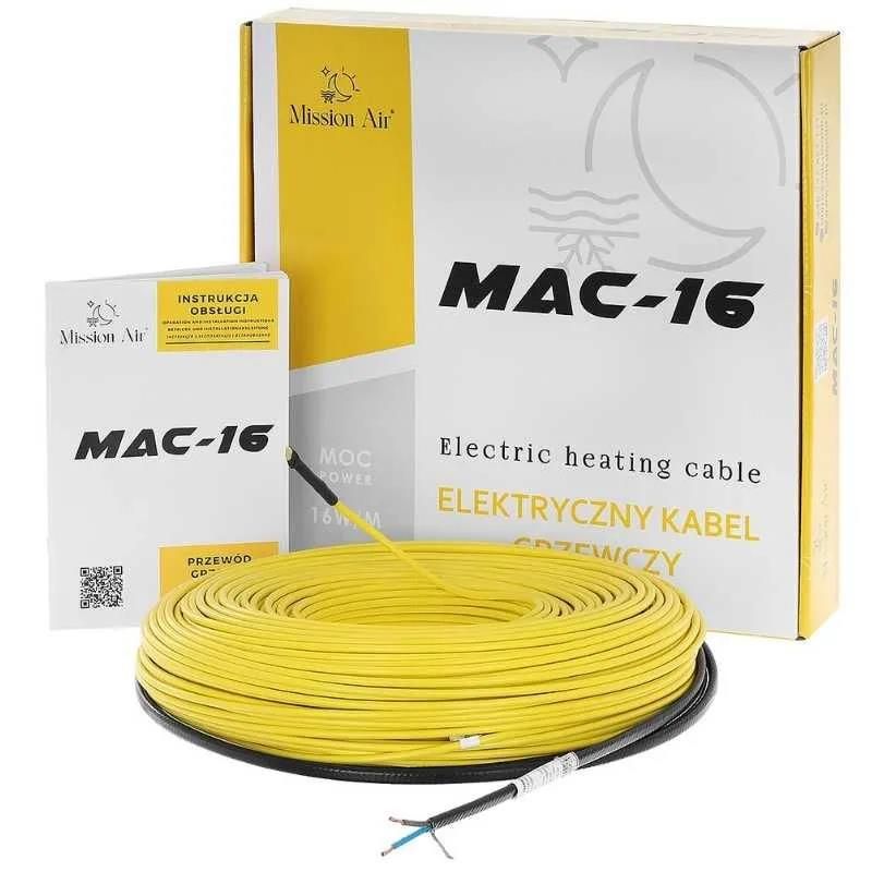 Mission Air® MAC-16 — це односторонній нагрівальний кабель для внутрішньої електричної теплої підлоги, призначений для монтажу в шар гнучкого клею під керамічною або кам’яною плиткою або в самовирівнювальну стяжку. Монтаж кабелю надзвичайно простий і ефективний, у поєднанні з терморегулятором можна створити енергозберігаючий і екологічний обігрів підлоги.