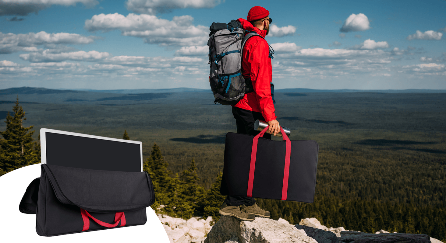 Інноваційний дизайн дозволяє брати телевізор буквально куди завгодно. Незважаючи на 32-дюймовий екран, телевізор не займає багато місця. Він важить всього 6 кілограмів, а в комплекті є спеціальна транспортувальна сумка, стійка до пилу і води. На задній частині пристрою є підставка, яка дозволяє стабільно встановити телевізор.