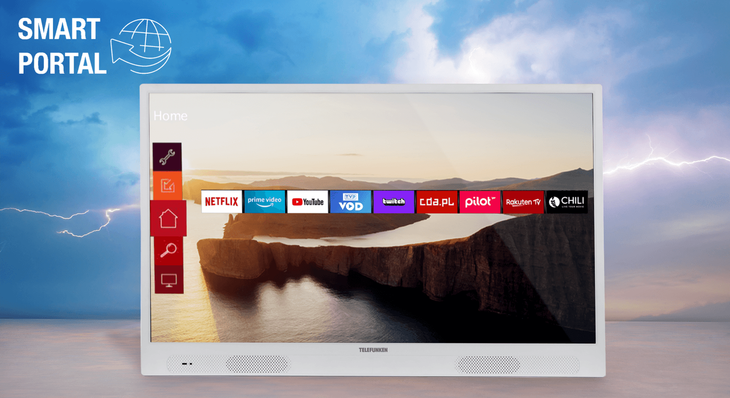 Це революційний портативний телевізор. Має не тільки великий екран і ємну батарею, а й програмне забезпечення Smart TV. Все, що вам потрібно зробити, це підключитися до Інтернету, і ви зможете використовувати такі програми, як Netflix, YouTube, Amazon Prime Video, TVP VOD або WP Pilot. Ви можете дивитися улюблені фільми та серіали, навіть перебуваючи далеко від дому!