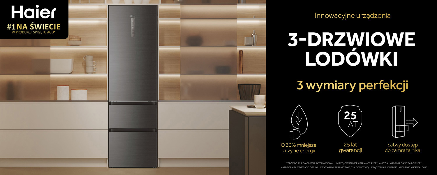 Інноваційні тридверні холодильники-морозильники Haier — це поєднання практичної функціональності з новітніми технологіями та чудовим дизайном. Холодильники серії 3D оснащені революційними рішеннями Fresher Techs, такими як: My Zone, Humidity Zone та місткість XXL завдяки ергономічним шухлядам. Крім того, 3D-холодильники споживають на 30% менше енергії на рік порівняно з традиційними дводверними холодильника