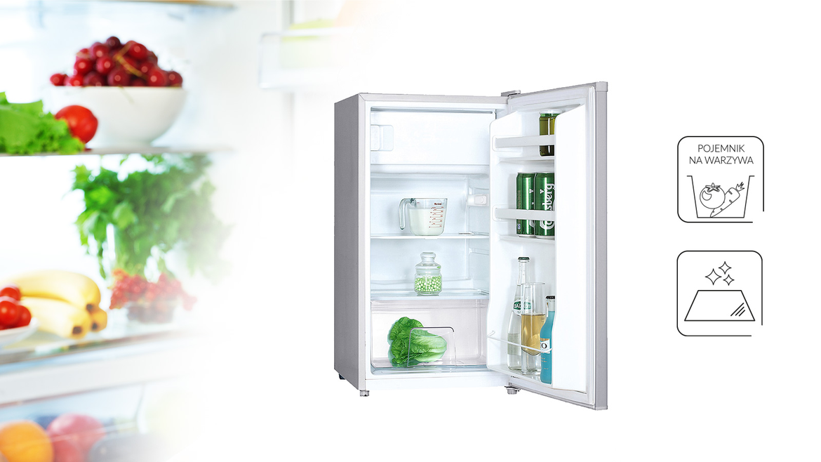 Холодильник MPM-112-CJ-32S/AA оснащений обладнанням, яке полегшує зберігання продуктів і підтримує порядок: контейнер для овочів, 3 прозорі полиці на дверцятах і скляні полиці в основній частині.