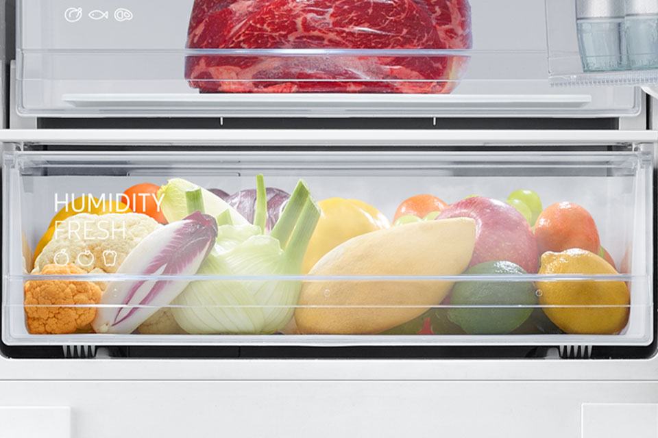 Для забезпечення високої вологості ми розробили шухляду Humidity Fresh. Поклавши туди овочі та фрукти, ви довше насолоджуватиметесь їхнім природним смаком, хрусткістю та запахом.