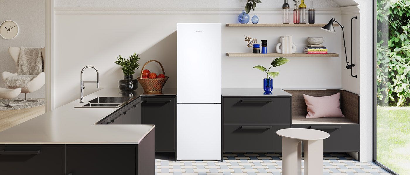 Холодильник Samsung RB33B610EWW має елегантний позачасовий зовнішній вигляд, який підійде до будь-якої кухні. Виконаний у білому кольорі з сучасними плоскими дверцятами та бічними ручками, він ідеально підійде до меблів. Крім того, можливість змінювати напрямок відкривання дверей забезпечує комфорт використання та оптимальне вписування холодильника в інтер’єр Вашої квартири.