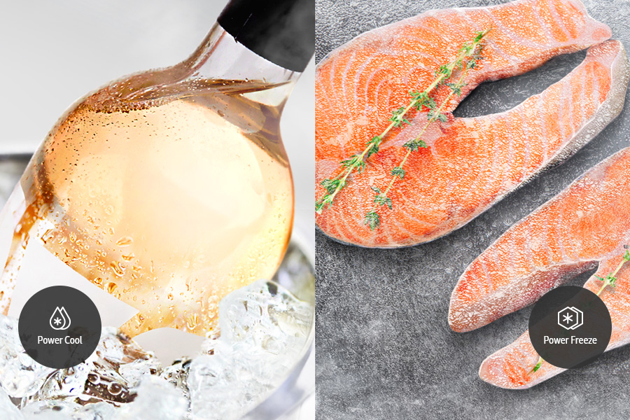 Перед великими покупками радимо ввімкнути функцію Power Freeze. Температура в морозильній камері опуститься до -23°C і залишиться такою протягом 50 годин, що полегшить заморожування більшої кількості продуктів. Якщо ви хочете прискорити охолодження напоїв, використовуйте функцію Power Cool, температура в холодильнику знизиться до +1°C.