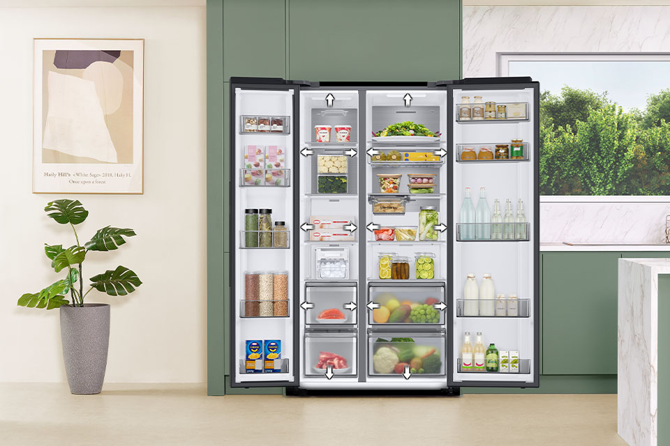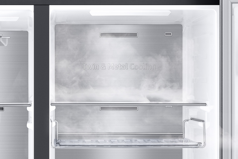 Використання технології Twin Cooling Plus™ забезпечує незалежне керування холодильною та морозильною камерами та оптимізує їх температуру та вологість. Він зберігає їжу в оптимальних умовах, тому ваша їжа довше залишається свіжою² і зберігає свій природний смак і аромат. Система також запобігає змішуванню запахів.