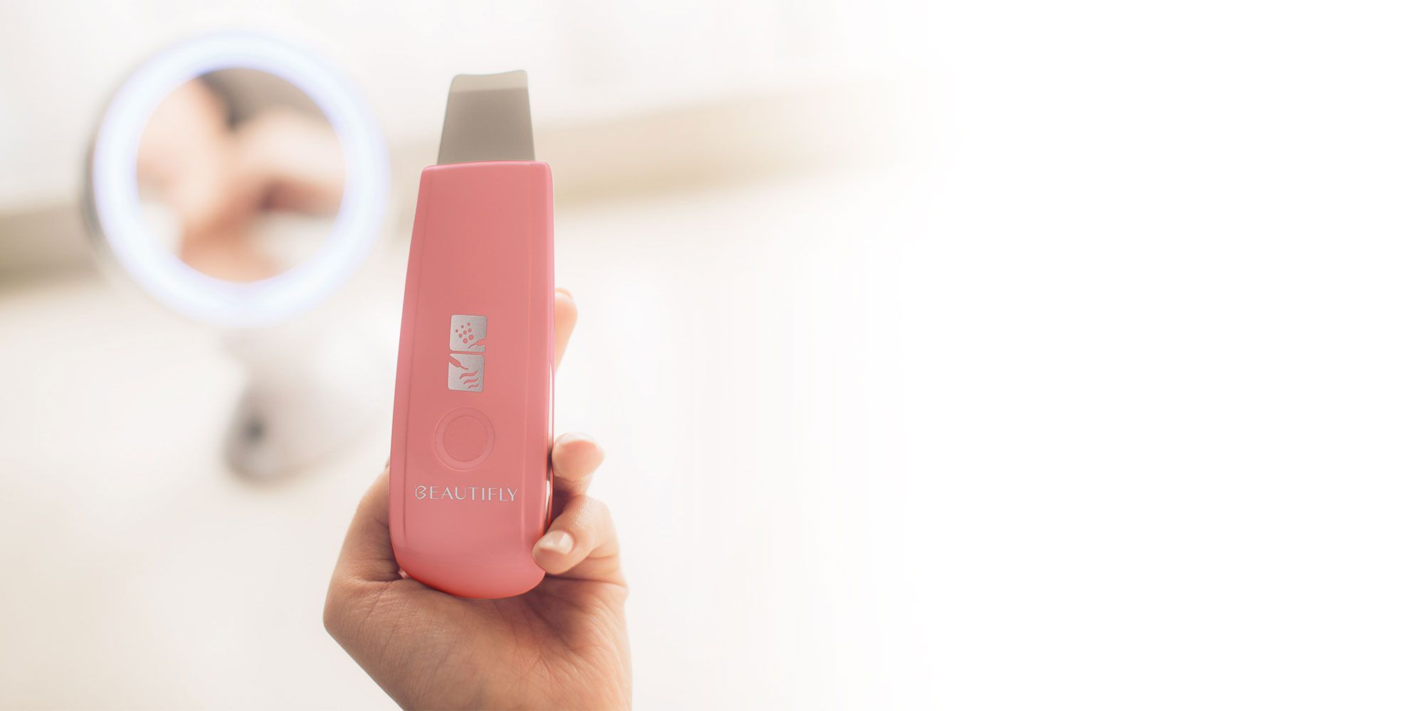 Пристрій B-Scrub відлущує мертву шкіру та очищає шкіру, роблячи її яскравішою, ГНУЧКОЮ ТА ЗДОРОВОЮ. ВисокоЧАСТОТНІ вібрації 24 кГц пом’якшують шкіру та відкривають закупорені пори.